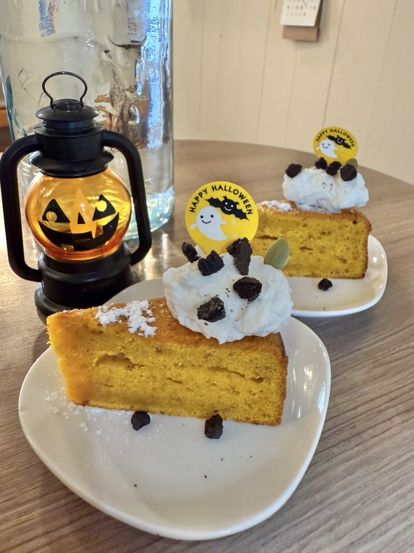 ロハスカフェ自家製sweetsシリーズ "かぼちゃケーキ2025"です。 lunchのセットミニデザートです ※数に限りがありますのでご了承ください ...