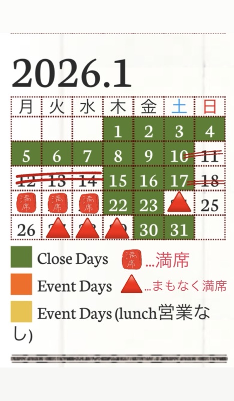 Event Days (lunch営業なし)