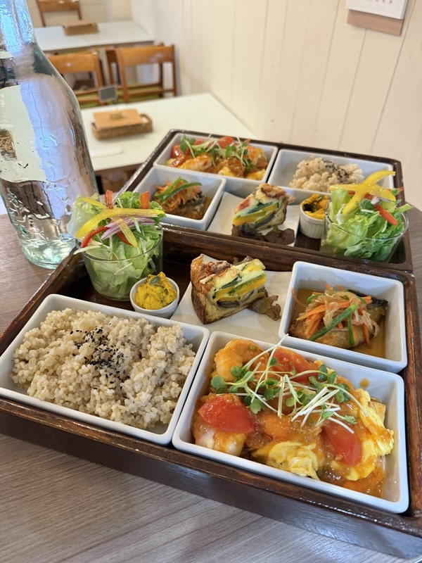"玉子と厚揚げの海老チリ" 付け合わせは "鯖のカレー風味南蛮漬け"と "野菜のミルフィーユキッシュ" "鶏そぼろのねぎ塩レモン蕎麦"付き ロハスlunch+plusもあります。 ...