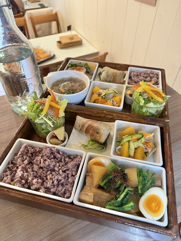 "大根と玉子の角煮" 付け合わせの2品は 一品は"キムチーズのピーマン肉巻き"です。 付け合わせもう一品は "イカと野菜のマスタードマリネ" "鶏そぼろのねぎ塩レモン蕎麦"付きロハスlunch +plusもあります。 ...